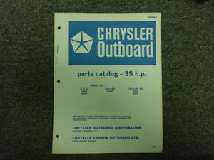 A 1966 Chrysler Outboard 35 HP Parts Catalog.What you see is what you will receive, we don't use stock... photos. Tons of information... and illustrations, covers everything,no missing pages. Shipping is $3.25... within the US lower 48, and includes delivery confirmation... We ship everywhere, we offer combined...