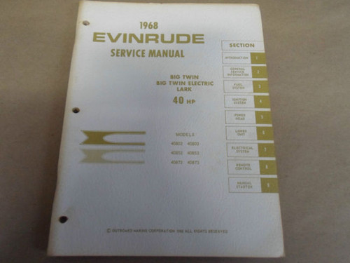 - 1968 Evinrude Service Shop Repair Manual 40 HP Big Twin Electric Lark NEW Boat x