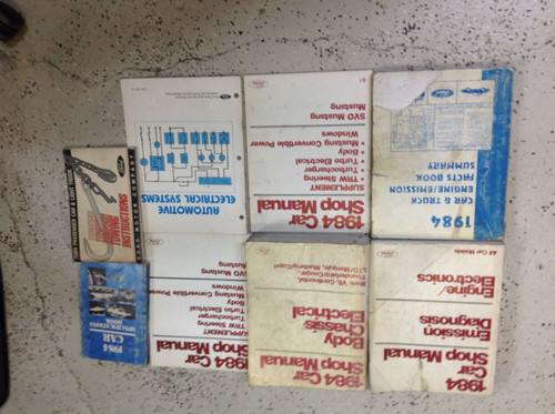 Factory 1984 Ford Mustang/Capri/Thunderbird/Cougar/MARK/Continental/LTD/Marquis Factory Body/Chassis/Electrical Service Manual, Engine/Emissions Diagnosis Manual,Engine Emissions Facts Book Summary Manual, Specifications Manual,Towing Manual, & Training Manual