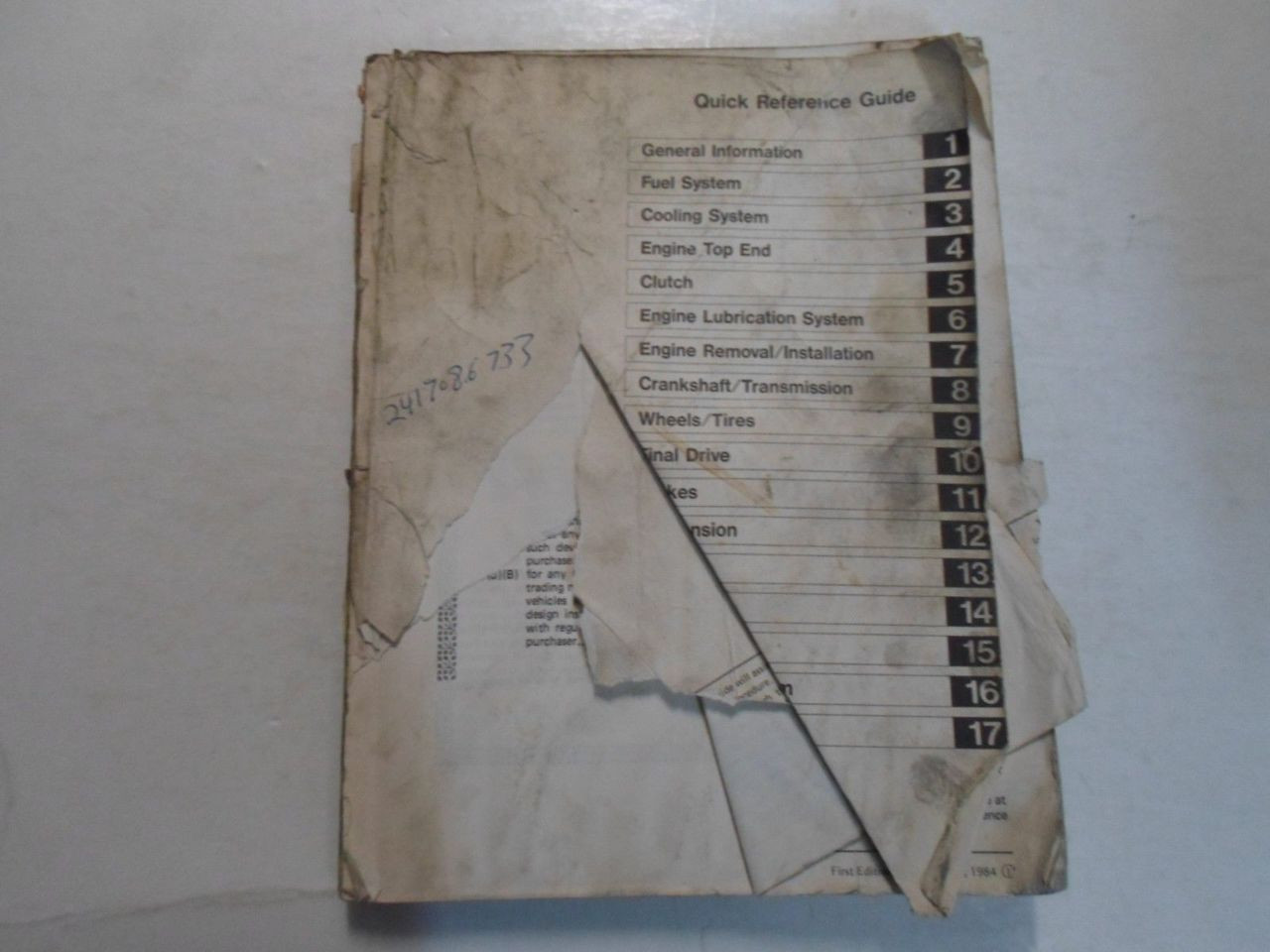 - 1984 Kawasaki GPz900R Service Repair Manual WATER DAMAGED WORN STAINED FACTORY