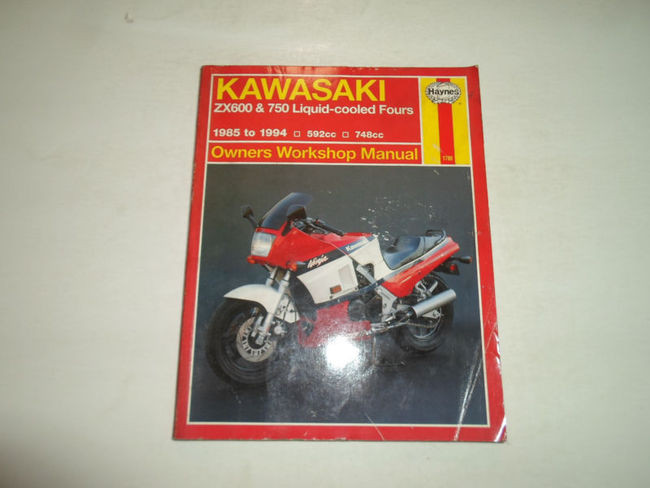 1985-1994 HAYNES KAWASAKI ZX600 750 LIQUID COOLED FOURS OWNERS WORKSHOP MANUAL... Note:Manual is WORN, over all the manual is in good legible condition.See Photos... Covers allot, step by step instructions, great manual to have when owning a KAWASAKI... This manual is published by HAYNES... We ship everywhere...