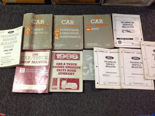 1986 FORD MUSTANG/CAPRI/COUGAR/THUNDERBIRD/ CONTINENTAL/MARK VII/LTD/MARQUIS Car Body/Chassis/Electrical Service Manual,Body Service Manual, Powertrain Lubrication Maintenance Manual,Specifications Manual, Facts Book Summary Manual, Technical Service Bulletins, Engine Emission Diagnosis Manual,& Technical Service Bulletin Index