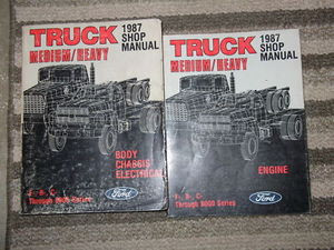 Factory 1987 Ford HEAVY/MEDIUM DUTY TRUCK body/chassis/electrical Service Manual,and the Engine Service Manual.