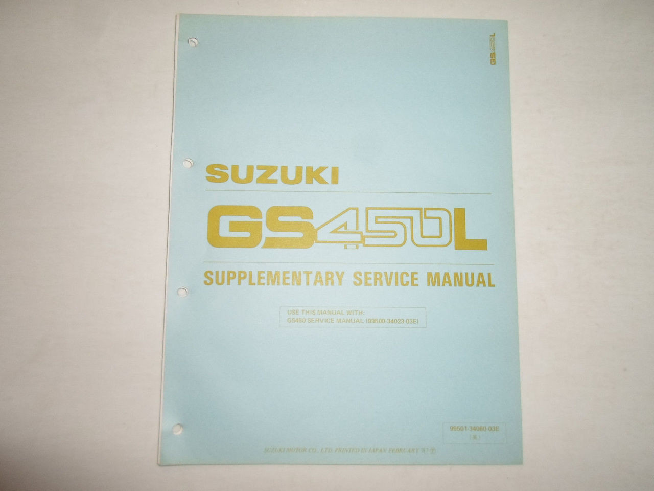1987 SUZUKI MOTORCYCLE GS450L SUPPLEMENTARY SERVICE MANUAL