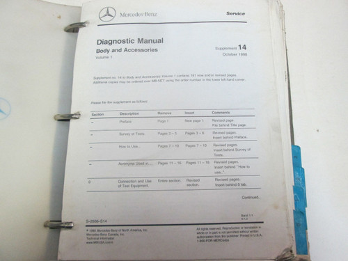 - 1990s Mercedes Body & Accessories Service Manual Supplement Volume 1 Updates ***