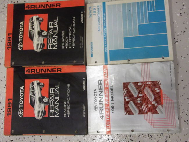 1991 Toyota 4Runner factory Service Manual Set, Wiring Diagrams Manual,and the Air Conditioner Installation Manual.