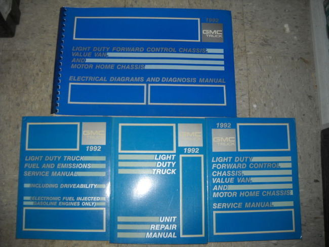 Factory 1992 GMC Light Duty Forward Control Chassis Value Van and Motor Home Chassis Service Manual, Electrical Diagrams and Diagnosis Manual, Unit Repair Manual,Fuel and Emissions Service Manual. |