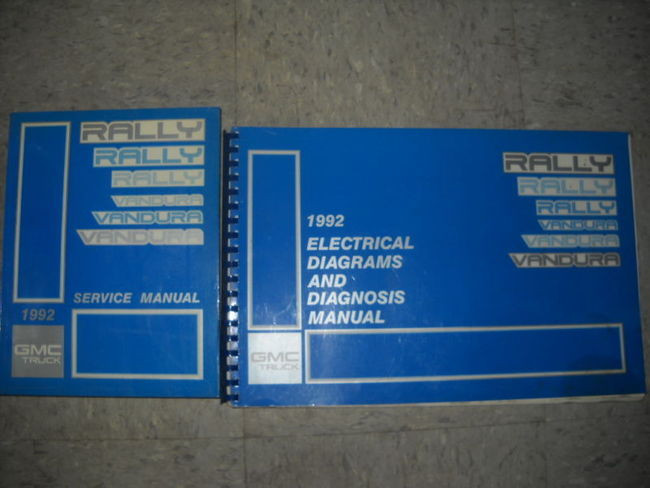 FACTORY 1992 GMC Rally Vandura and Magnavan Service Manual,and the Electrical Diagnosis/Diagrams Manual Loads of information and illustrations, covers a lot, no missing pages, step by stepInstructions, exploded illustrations and/or diagrams, great manual to have when you own GMC. This manual will save you money in Repairs/Service. This manual is published by GM, and are the same manuals the GM Mechanics/Technicians use.