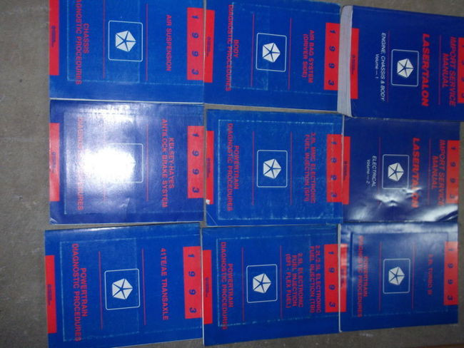 1993 Factory Eagle Talon/Plymouth Laser 2 Volume Service Manual Set,and the Body/Powertrain/Chassis Diagnostics Procedures Manuals.