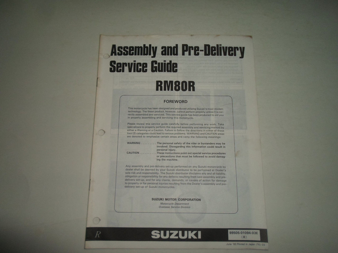 1993 SUZUKI RM80R ASSEMBLY & PRE-DELIVERY SERVICE GUIDE MANUAL MINOR STAINS
