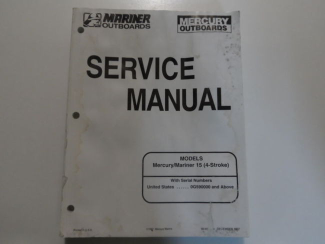 - 1997 Mercury 15 4 Stroke Service Repair Shop Manual 09-856159 WATER DAMAGED 97