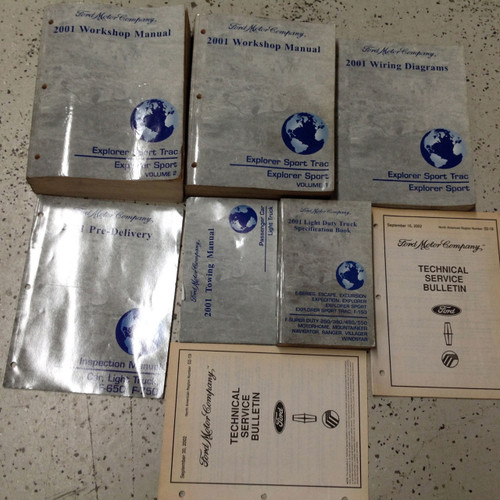 Factory 2001 Ford Explorer/Sport Trac Service Manual 2 Volume Set, Wiring Diagrams Manual, Inspection Manual, Specifications Manual, Towing Manual, & Technical Bulletins