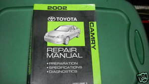 Used 2002 Toyota Camry factory service manual volume 2 only... The service manual volume 1 covers specifications/preparations/diagnostics... Tons of information and illustrations,covers alot... Shipping is $7.95 within the US lower 48, and includes delivery confirmation/insurance... This is an original not a reprint, and published by...