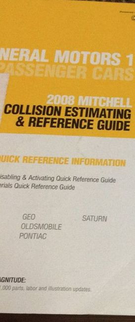 2008 GENERAL MOTORS PASSENGER CARS 2008 MITCHELL COLLISION ESTIMATING & REFERENCE GUIDE MANUAL.